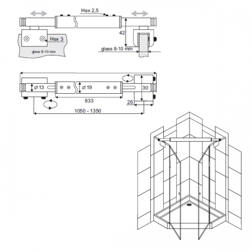 Regulējams garums: 1050-1350mm
