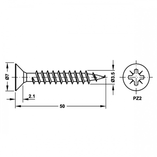 Skrūves 3.5x50 ar gremdgalvu ( kastē 500 )